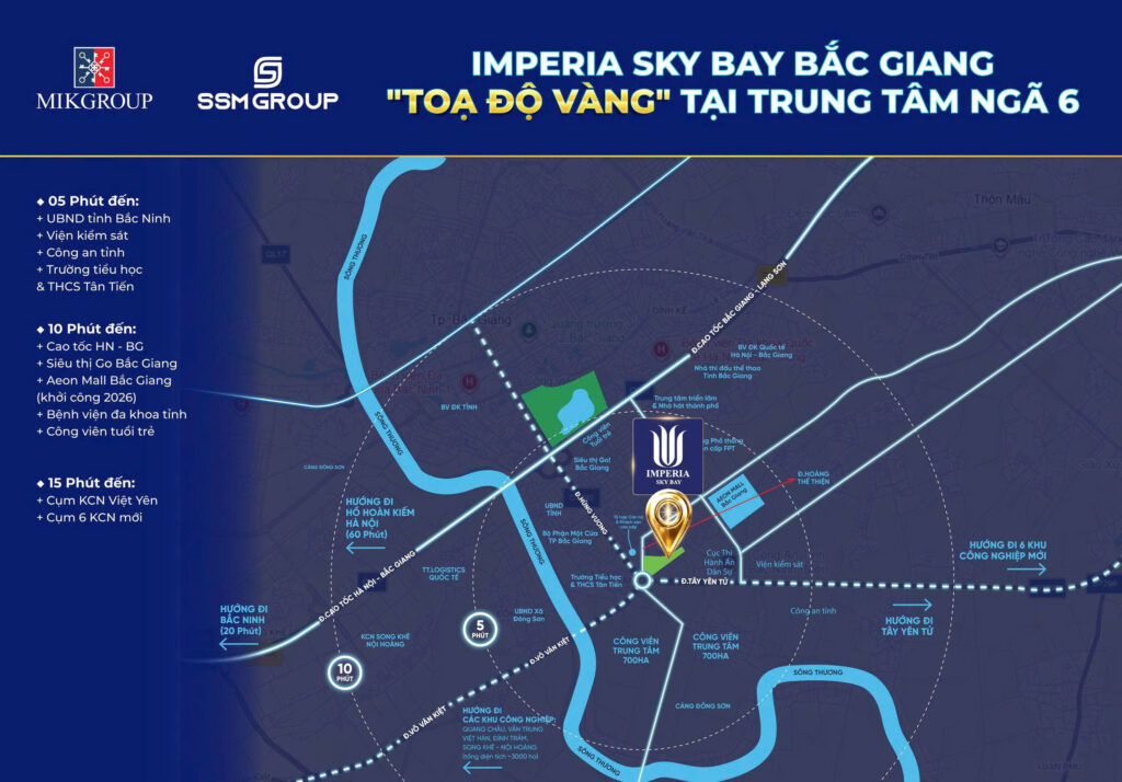 Dự án đô thị biểu tượng mới của Tập đoàn MIK Group tại trung tâm thành phố Bắc Giang, kế thừa tinh thần “sống trọn từng khoảnh khắc”, hòa quyện cùng giá trị phồn hoa của khu đô thị hiện đại chuẩn quốc tế. Nơi đây là giao điểm của năng lượng và nhịp sống thịnh vượng, nơi cộng đồng cư dân tinh hoa tận hưởng trọn vẹn từng phút giây an nhiên và hạnh phúc.